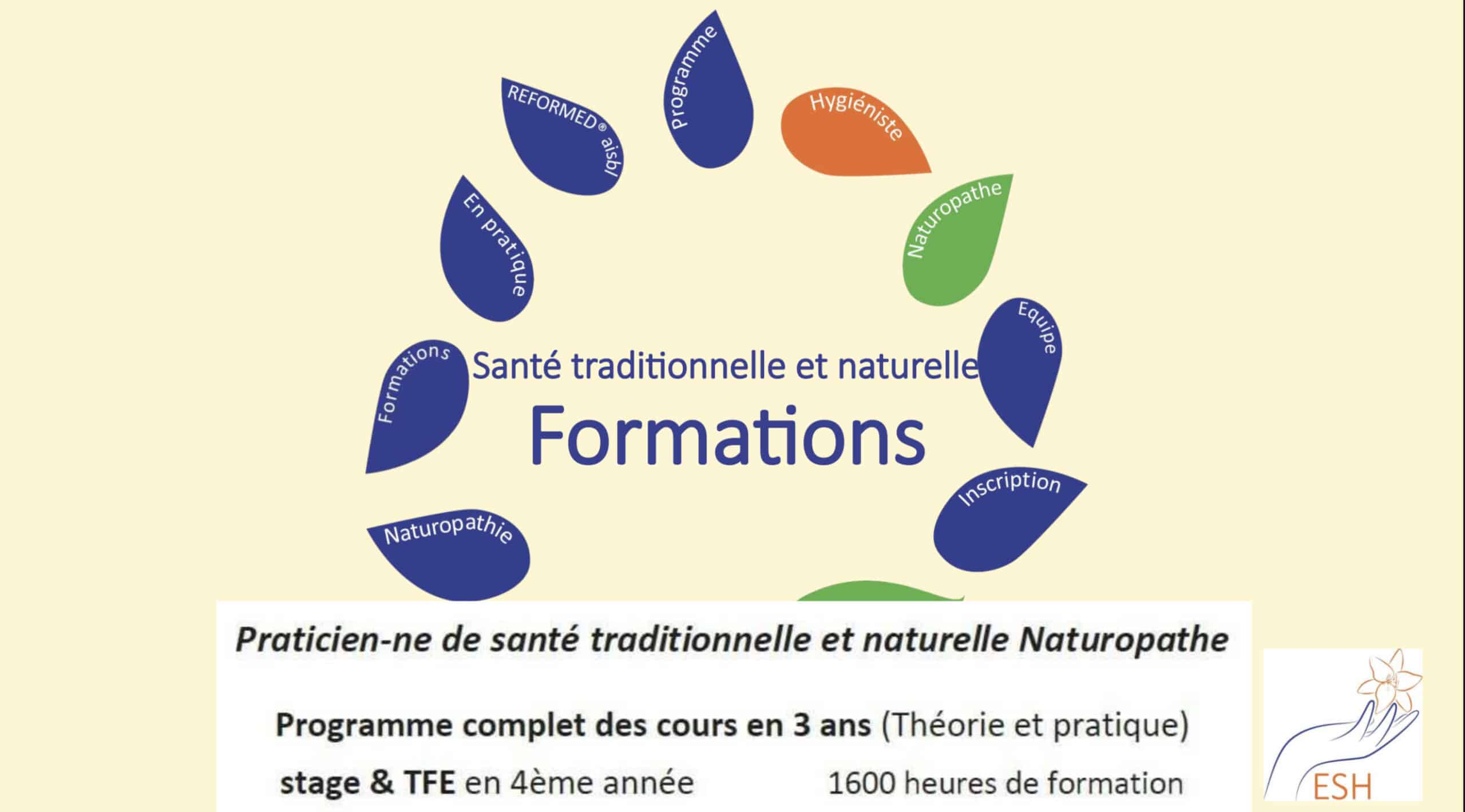 Formation professionnelle certifiée en naturopathie depuis 1996Centre de Santé Holistique depuis 2008 et programme de formation accrédité par REFORMED® aisbl depuis 2008